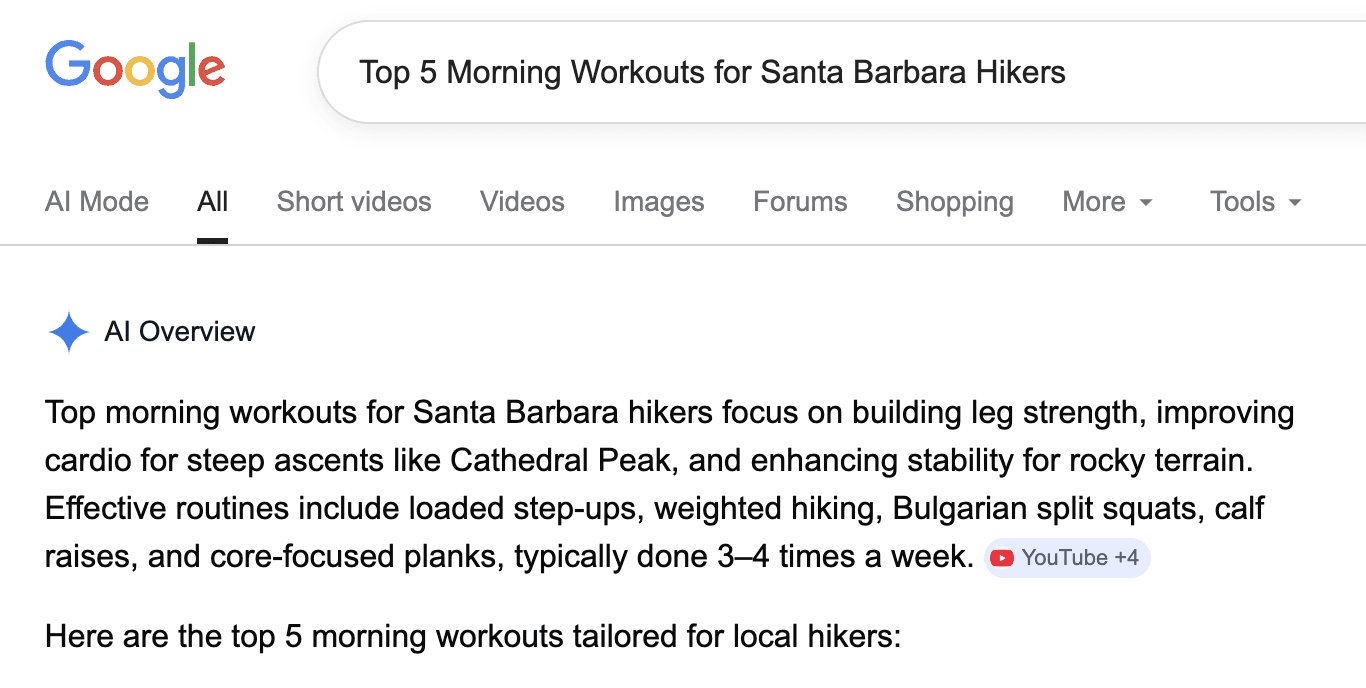 For a local gym, create a page like “Top 5 Morning Workouts for Santa Barbara Hikers.” Google loves pulling the list as a snippet. A real gym did this and saw membership inquiries jump 25% from voice searches.